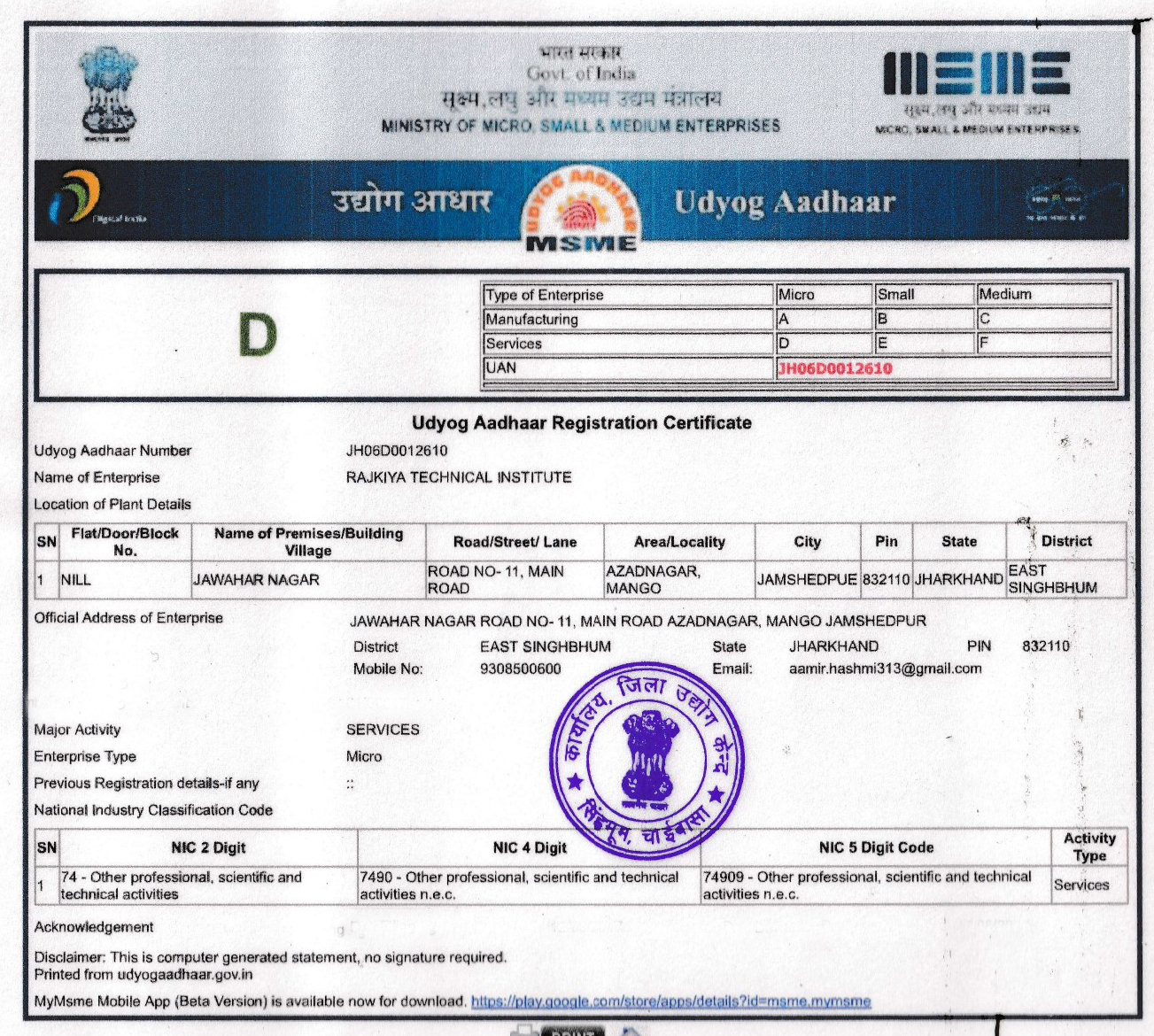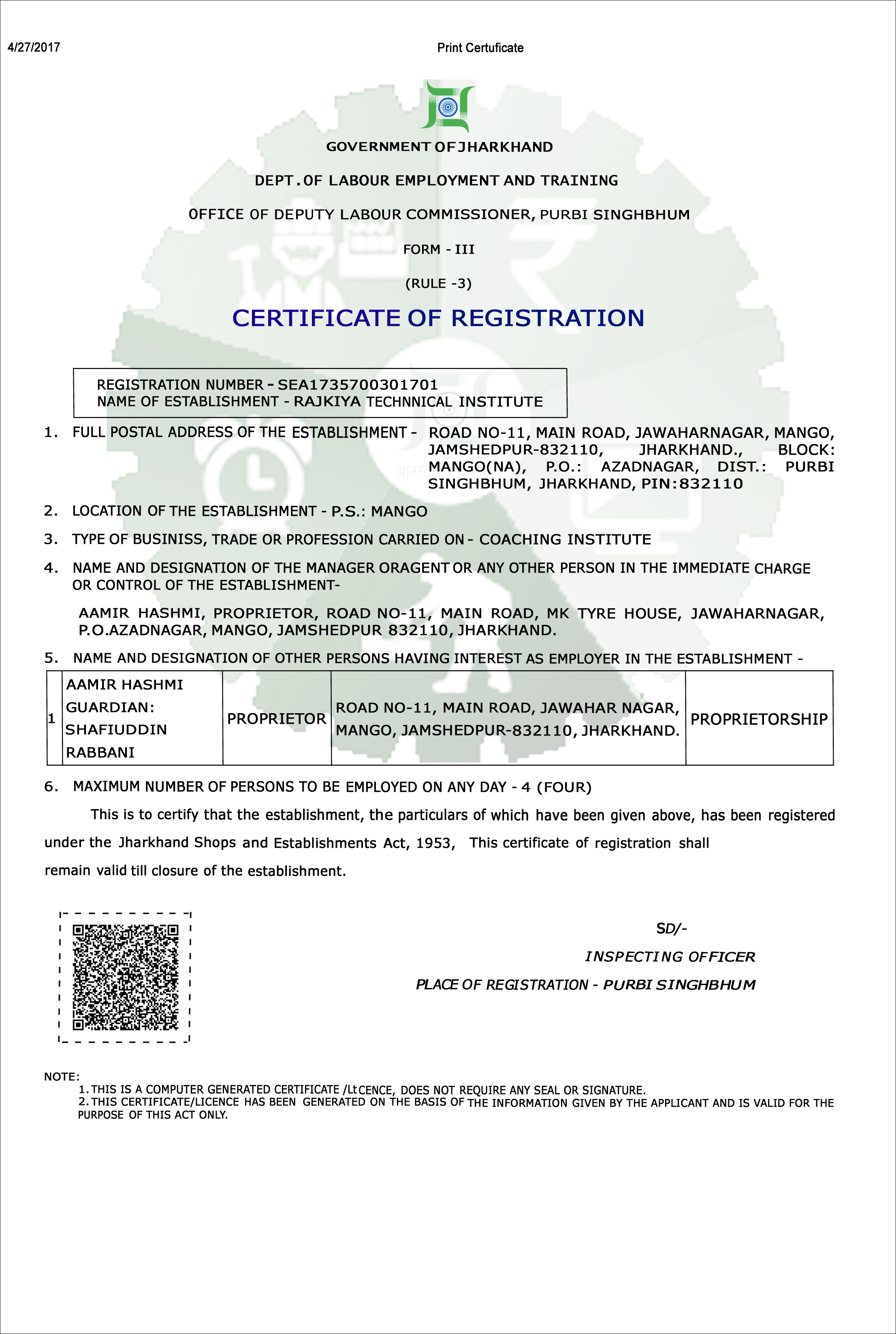 This Institute is a very good Institute.. . I have done a safety officer course in this Institute. I felt very well during the class.. I'm thankfull to the Rajkiya Technical institute.