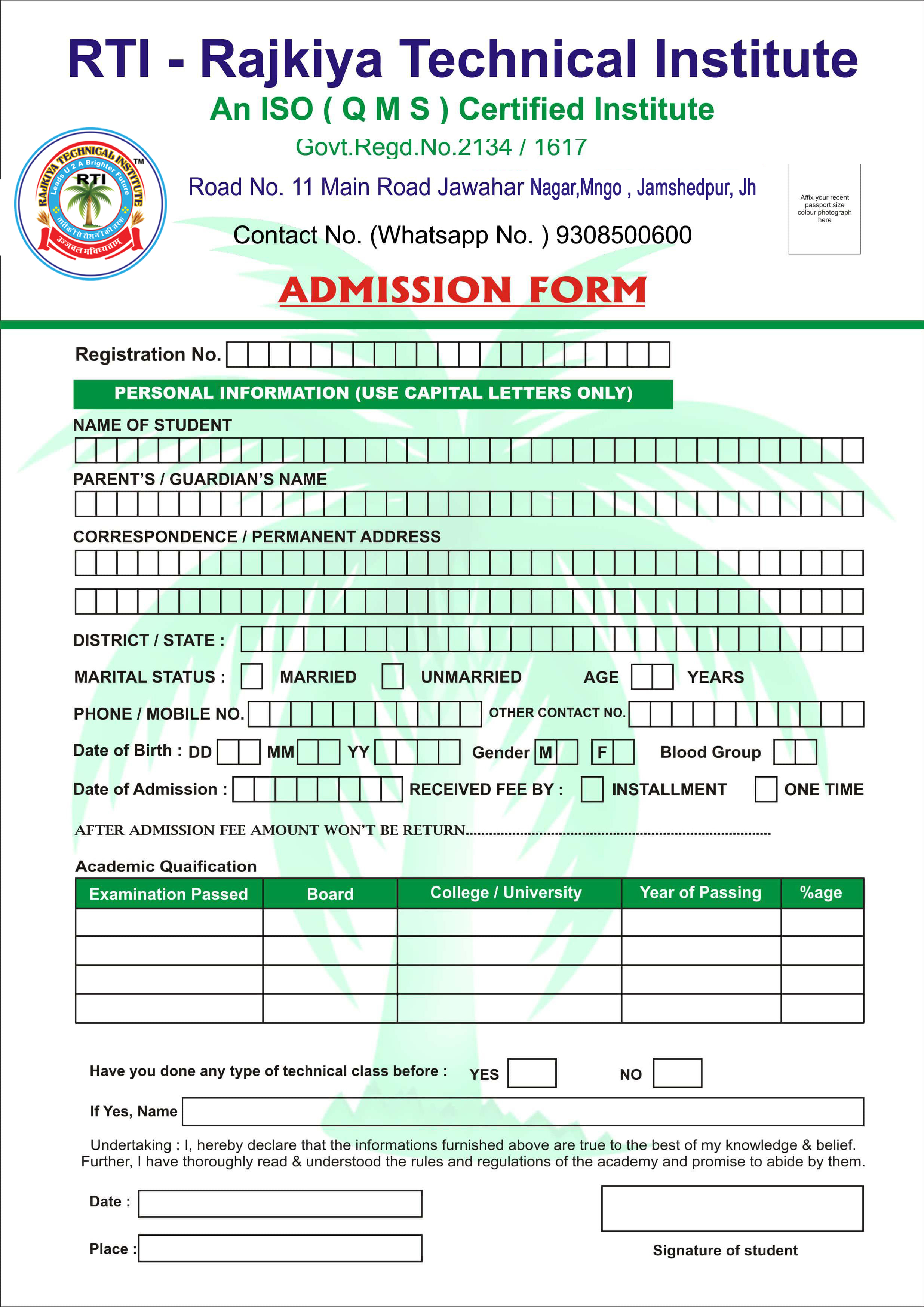 Download Admission Form